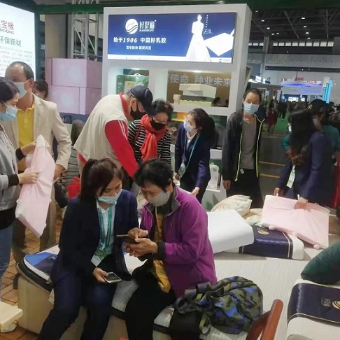 冬交會期間,好舒福乳膠制品公司共攜10余種乳膠產(chǎn)品到現(xiàn)場參展,不少參展嘉賓紛紛走進“好舒?!闭刮?,親身感受天然乳膠寢具帶來的舒適睡眠體驗。“此次參展床墊在全國統(tǒng)一價的基礎上打7折,其余小件低至5折。”海南橡膠展區(qū)“好舒?!闭刮回撠熑粟w鶴楠介紹。
