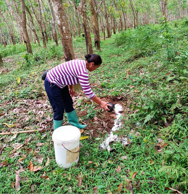 在膠園里,和韋芳想法相同的膠工不少。膠園里熱火朝天,膠工們在做好疫情防控的基礎(chǔ)上,手持膠刀細(xì)心割膠,滿頭是汗。林子里切割樹皮的聲音不時沙沙作響。